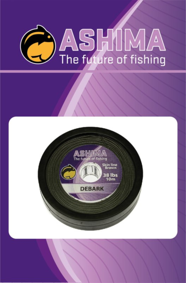 De Ashima Debark PVC Skin Line is een zacht, soepel en zinkend onderlijnmateiraal dat gecoat is met PVC. Hierdoor zinkt je onderlijn snel naar de bodem en blijft daar mooi plat liggen. Deze PVC lijn is verkrijgbaar in 18lb, 28lb en 38lb in de kleur Camo Brown met 10 meter op een spoel. Het volgt mooi de contouren van de bodem, laat zich goed gebruiken voor een grote variatie aan moderne onderlijnen en laat zich tegelijk makkelijk verwerken. Het onderlijnmateriaal dat je tijdens je obstakelvisserij heel goed kan inzetten!